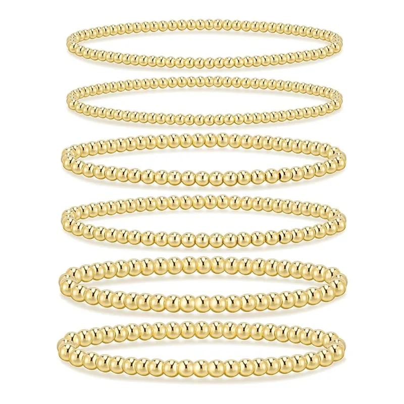 Bracelet en or extensible pour femme : Longueur : chaque bracelet de perles plaqué or 14 carats a une longueur de 7,25 pouces. Le bracelet extensible en perles plaquées or est élastique et peut être porté sur différents poignets, vous permettant de toujours respirer l'élégance et le côté sexy.
