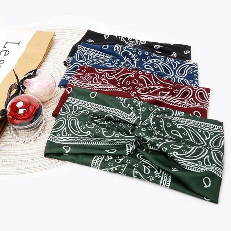 Riche en couleurs et tendance : avec 8 motifs cachemire. Les bandeaux boho bandana en polyester sont parfaits pour un usage quotidien, la plage, les fêtes, le maquillage, le spa, le yoga, la course, même le travail ou les études.