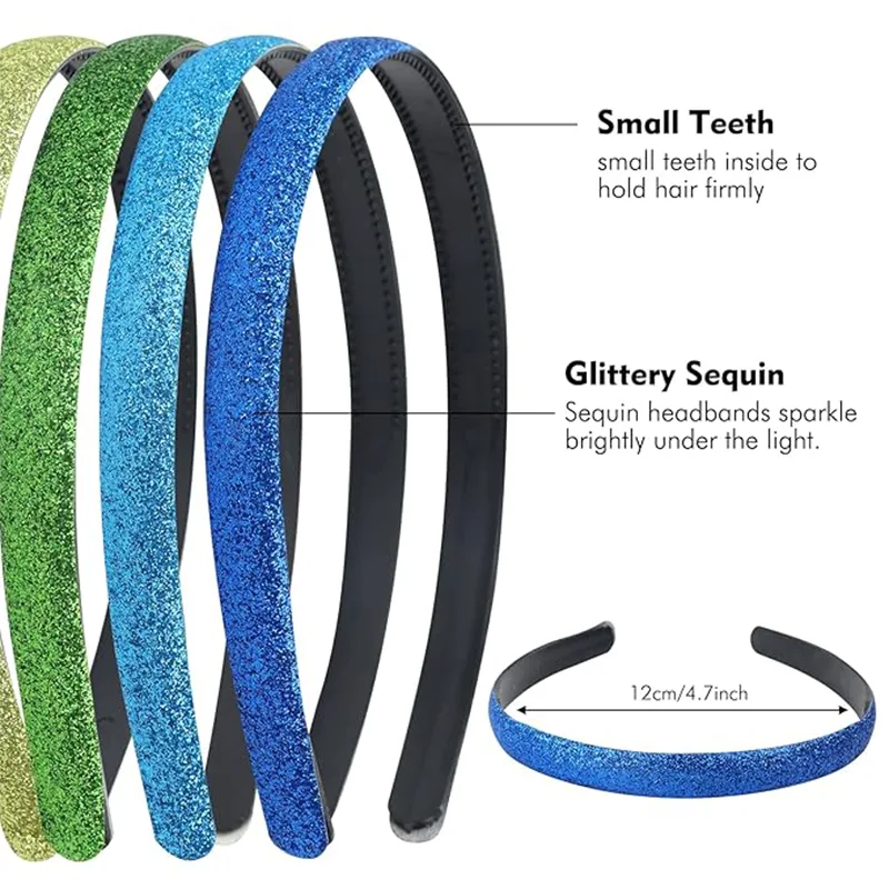 Scénarios d'application multiples : les bandeaux en plastique à paillettes conviennent à diverses occasions, des vêtements décontractés aux mariages, bals de fin d'année, fêtes, etc. Ce sont des bandeaux décoratifs qui peuvent ajouter une touche de luminosité à n'importe quel style et conviennent aux femmes, aux filles, aux adolescents et aux enfants.