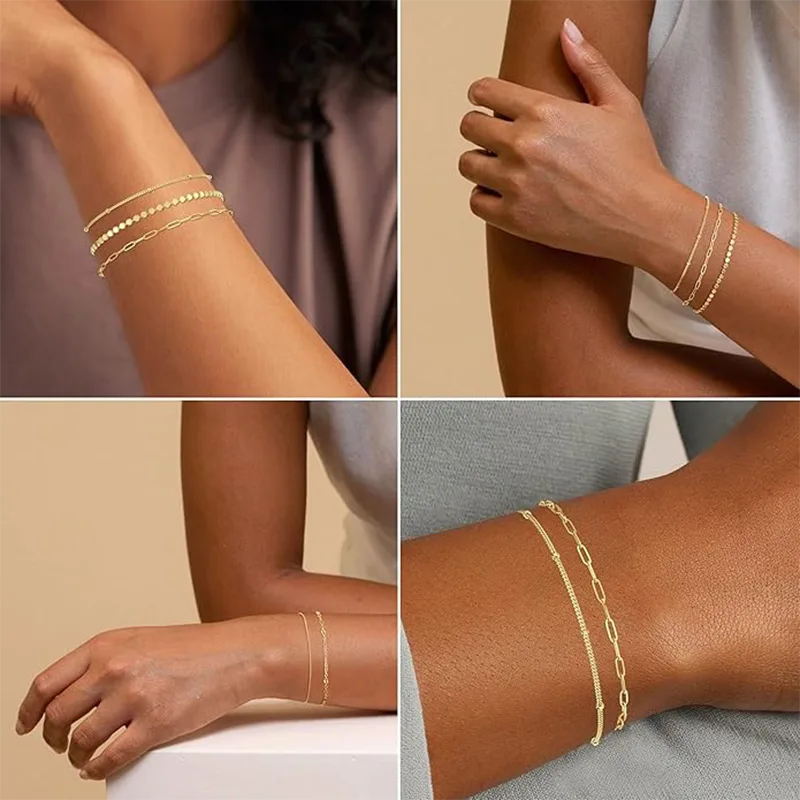 Convient aux peaux sensibles – 100 % ne rendra pas vos poignets verts. Les bracelets dorés pour adolescentes sont fabriqués à partir de matériaux de haute qualité. Le revêtement en or 14 carats est durable et garantit aucun changement de couleur. Il est sans plomb, sans nickel et non allergène, respectueux des peaux sensibles.
