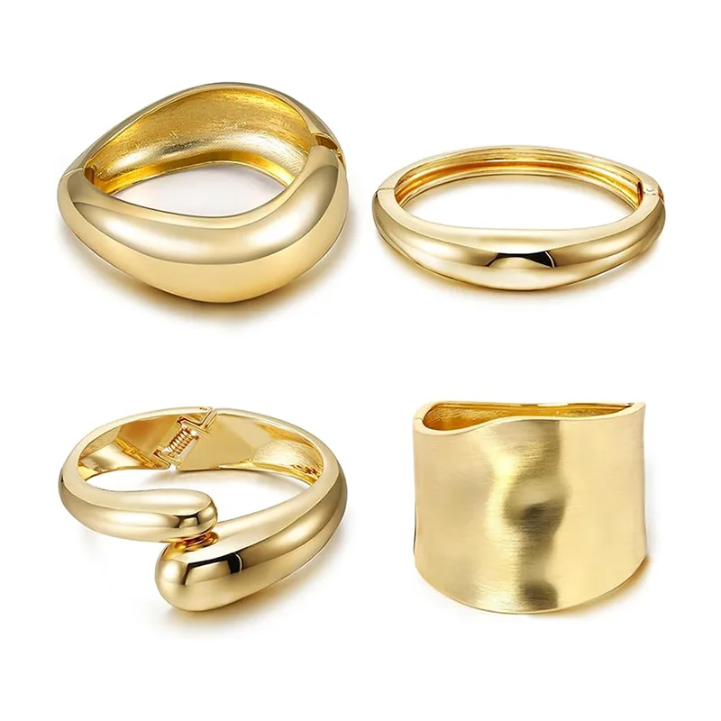 Le bracelet en alliage quotidien pour femmes se décline en quatre styles simples et robustes : le bracelet doré en forme de larme à la mode, le bracelet large, le bracelet robuste et le bracelet irrégulier doré sont tous disponibles, répondant pleinement à vos différents besoins.